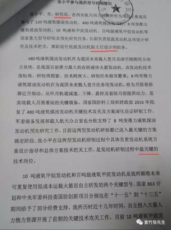 上述网文中透露,正是这个有“中国航天动力之乡”的美誉的研究所,“70%的人都是副主任设计师”,相比较之下,“张小平只是个研究员,职称是副主任设计师,这是整个所的最底层”。